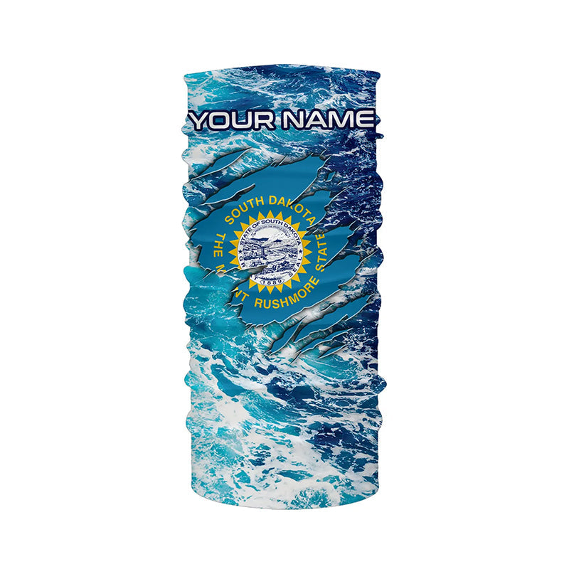 Blue sea wave ocean camo South Dakota flag patriot shirt Custom sun protection fishing shirts NQS8164