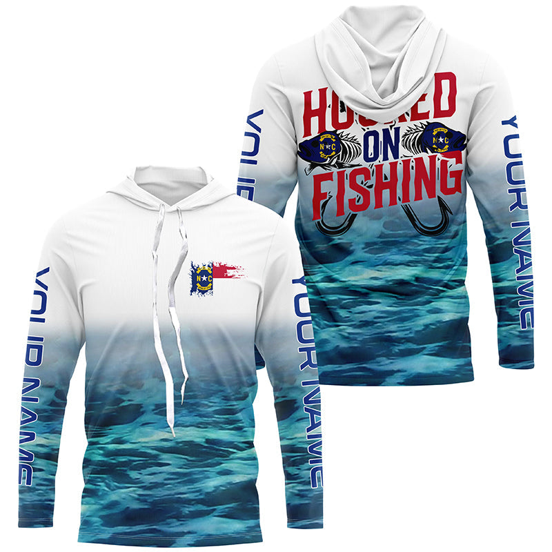 Personalized North Carolina Flag Long Sleeve Fishing Shirts, Hooked On Fishing Nc Fishing Shirt IPHW7033