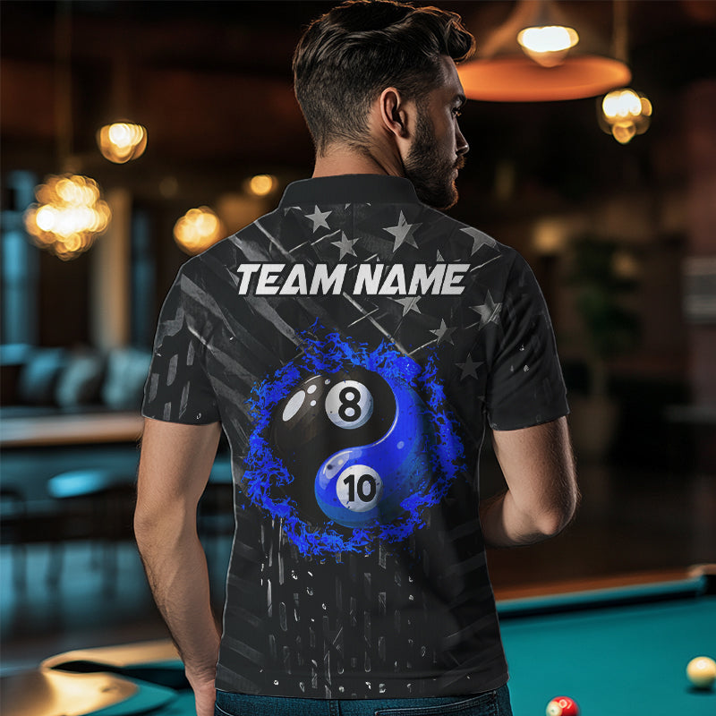 Black US Flag Ying And Yang 8 Ball & 10 Ball Custom Billiard Shirts For Men Funny Billiard Jerseys TDM3540