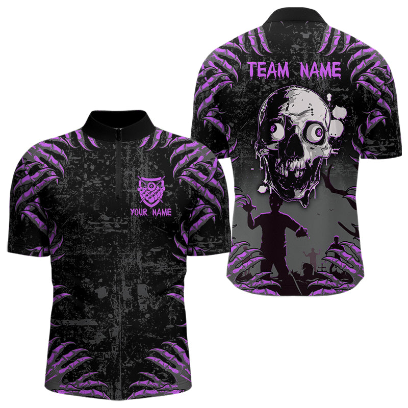 Funny Skull Claw Pattern Custom Men Billiard Shirts, Grunge Purple Black Team Billiard Jerseys TDM3751