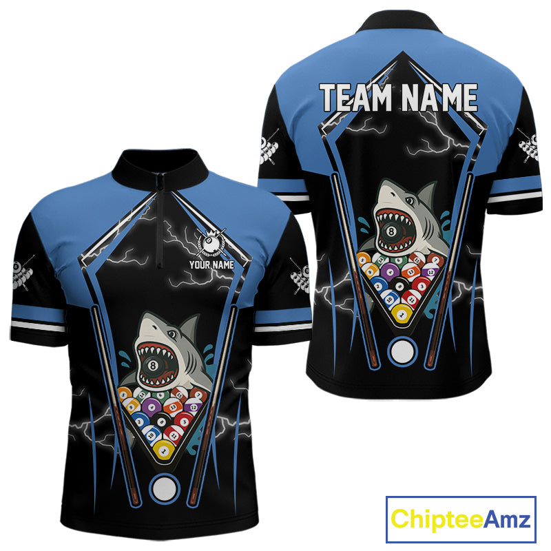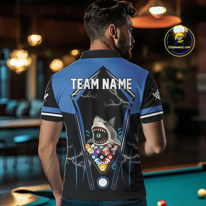 Black Blue Funny Pool And Shark Billiard Shirts For Men Custom 8 Ball Billiard Team Jerseys TDM4081