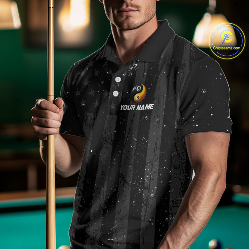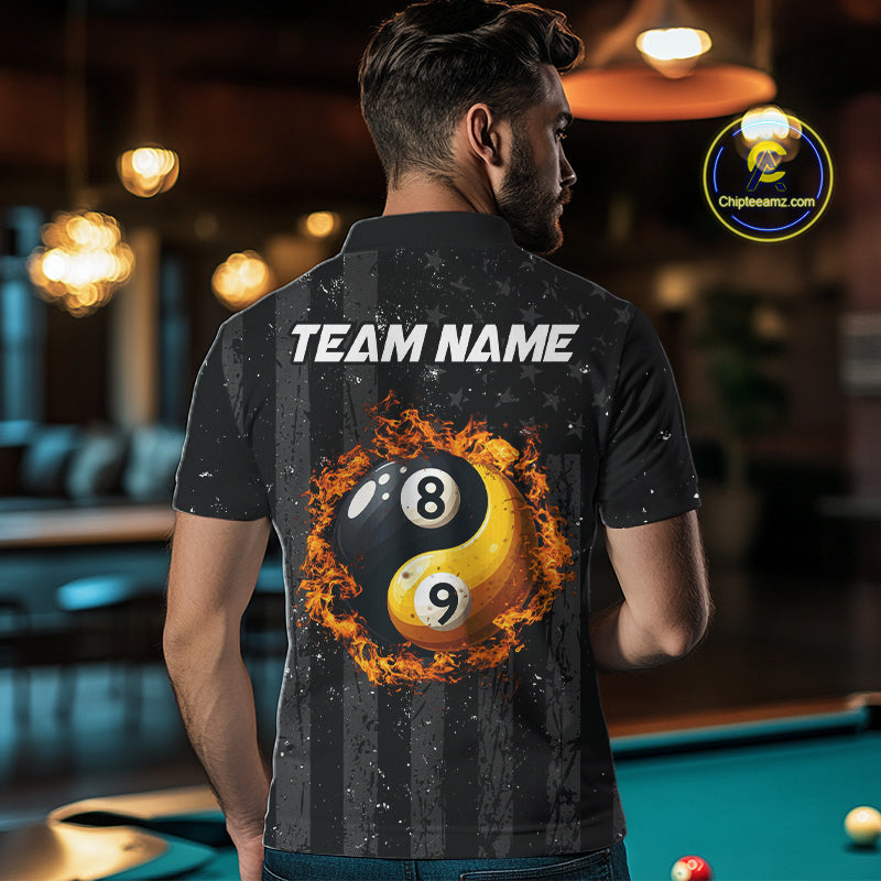 Black US Flag Ying And Yang 8 Ball & 9 Ball Custom Billiard Shirts For Men Funny Billiard Jerseys TDM4082