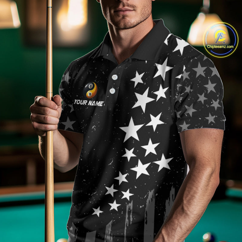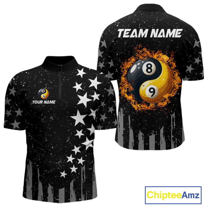 Black US Flag Ying And Yang 8 Ball & 9 Ball Custom Billiard Shirts For Men Funny Billiard Jerseys TDM4083