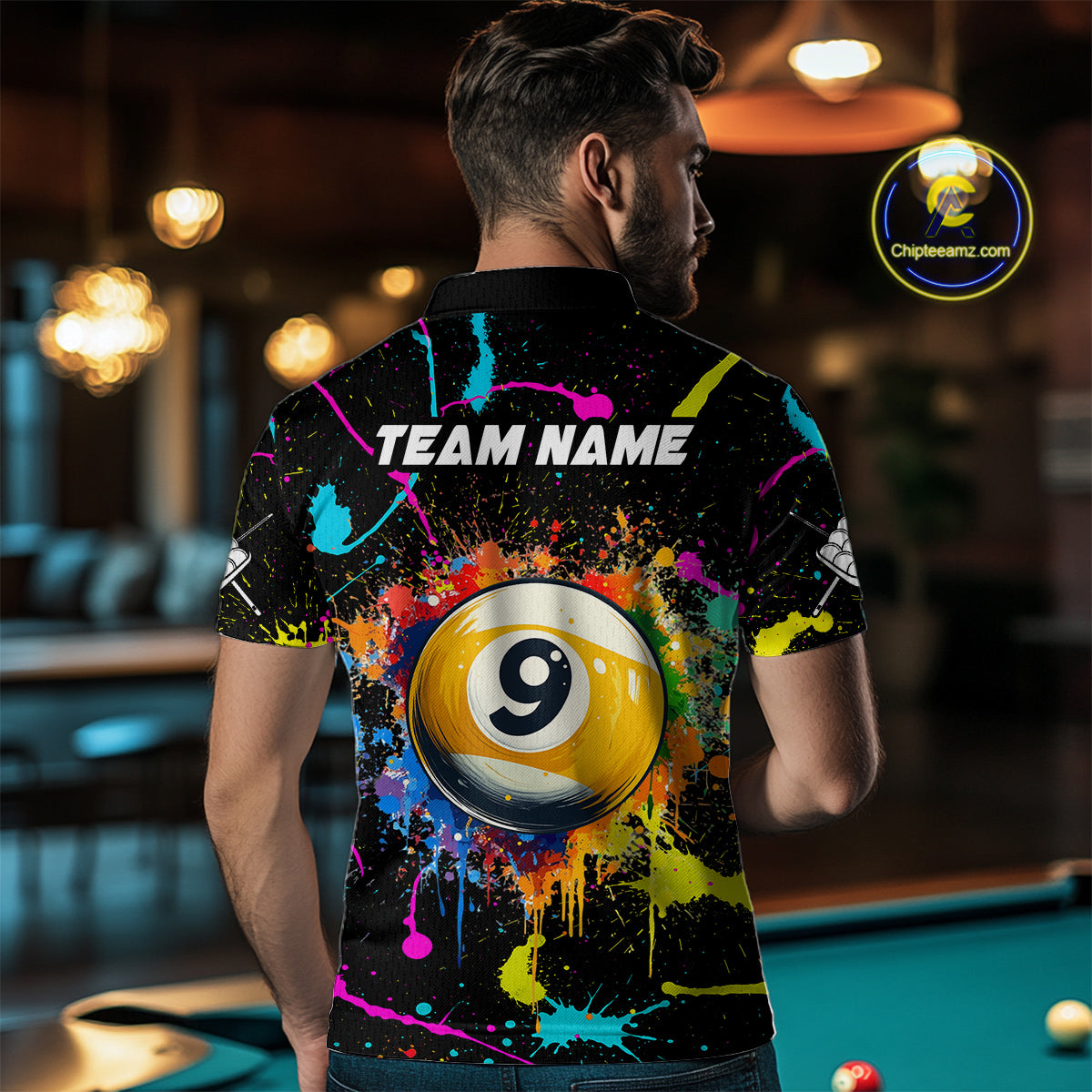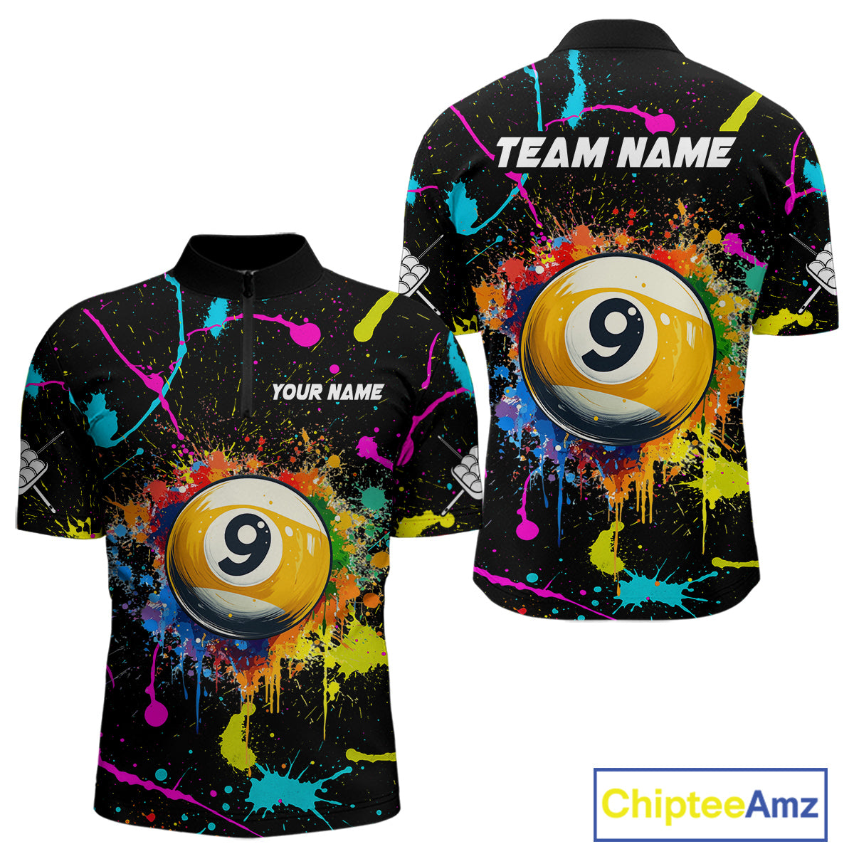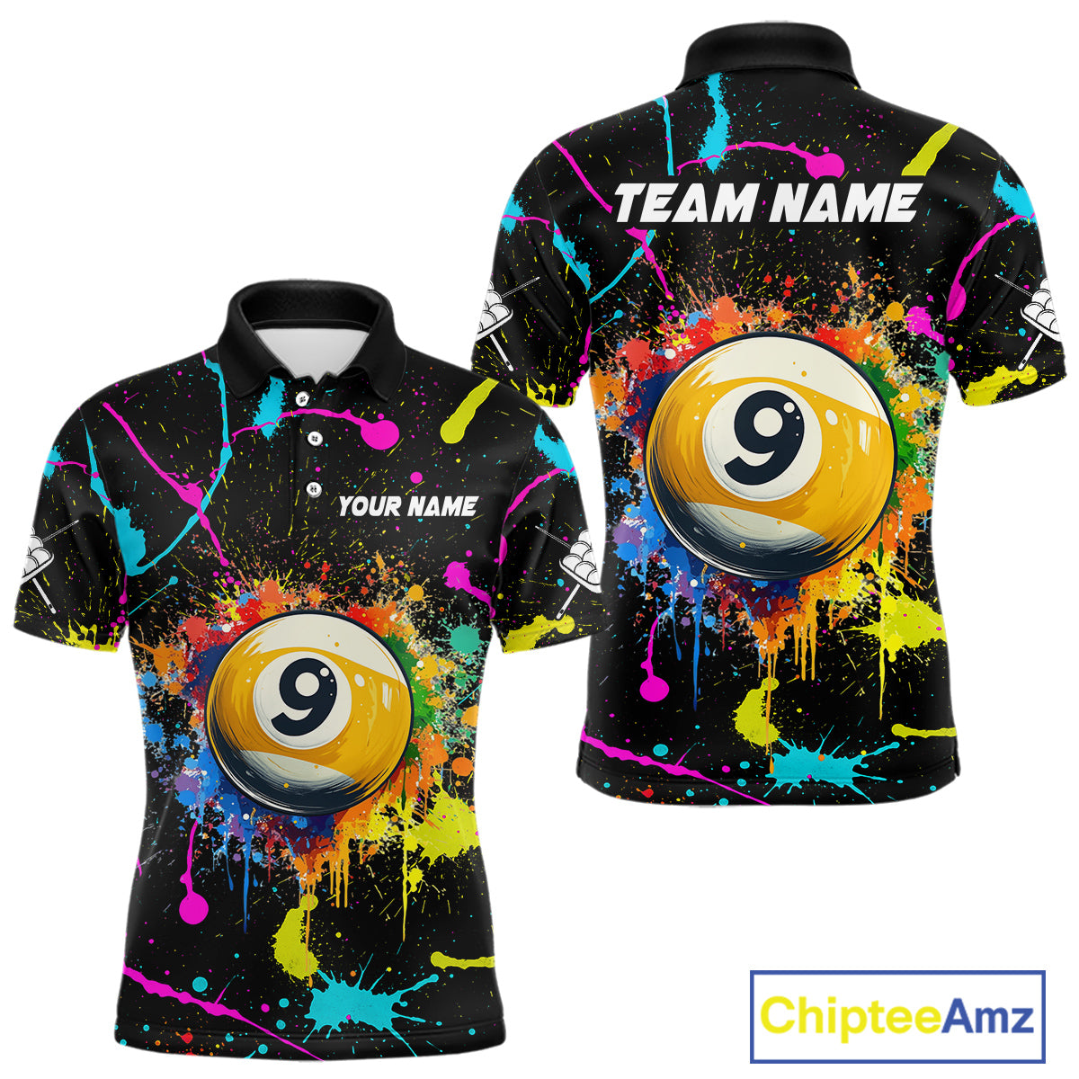 Funny 9 Ball Pool Colorful Paint Splash Custom Billiard Shirt For Men, Billiard Team Jersey Outfit TDM4604