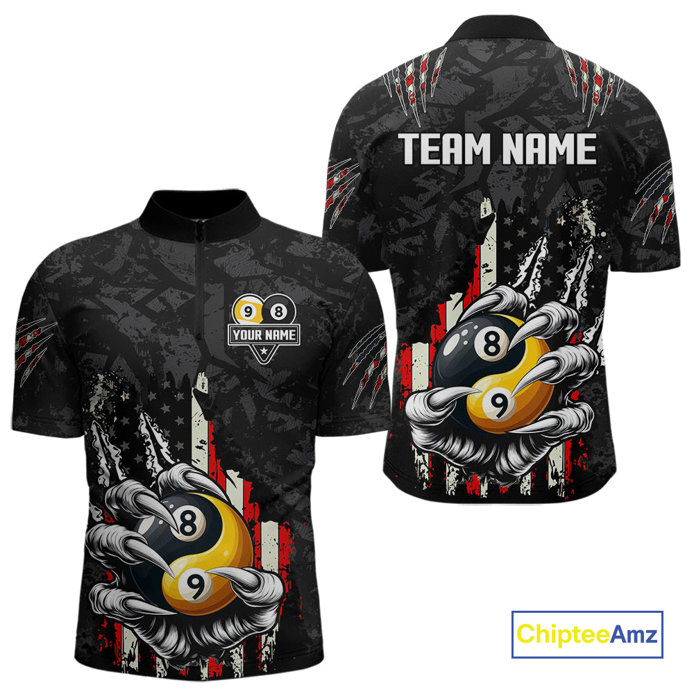 Funny Claw Tearing Us Flag Yin-Yang Billiard Shirt For Men Custom 8 & 9 Ball Billiard Team Jerseys TDM4605