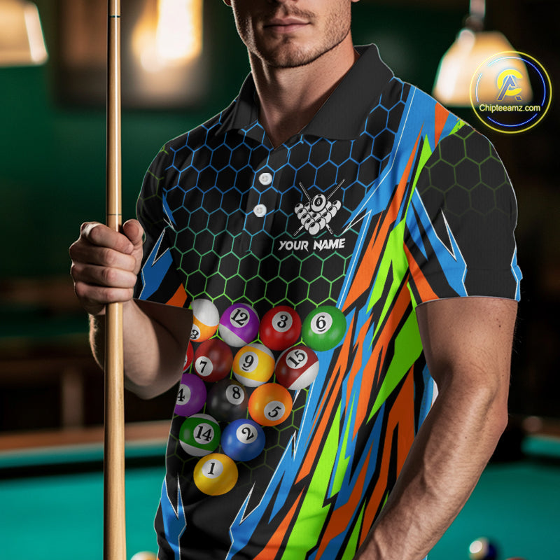 Colorful 3D Billiard Jersey For Men Custom Funny Pool Balls Billiard Team Shirt Polo & 1/4 Zip TDM4933