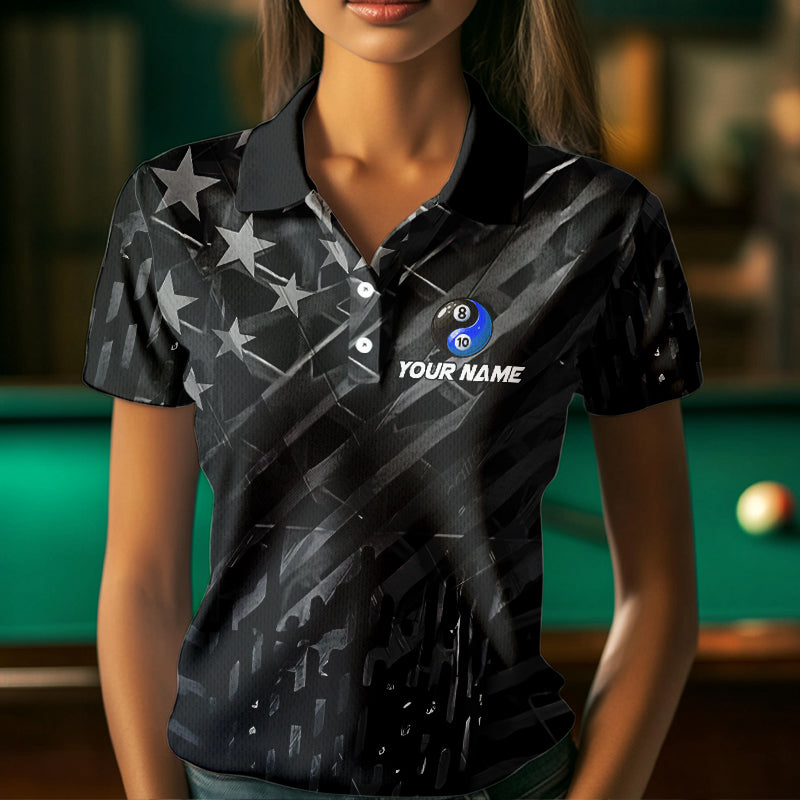 Black US Flag Ying And Yang 8 Ball & 10 Ball Custom Billiard Shirts For Women Funny Billiard Jerseys TDM3540