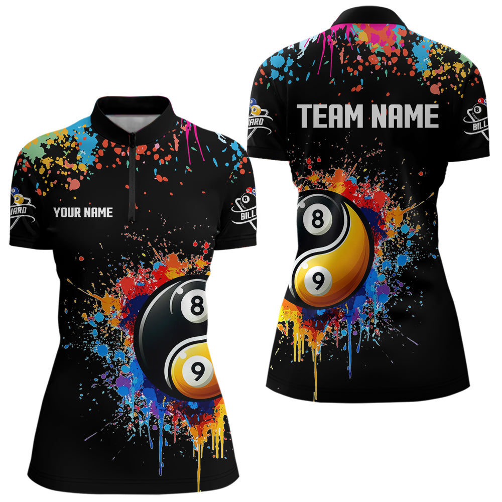 Funny Ying And Yang 8 Ball & 9 Ball Colorful Splash Custom Billiard Shirt For Women, Billiard Jersey TDM3703