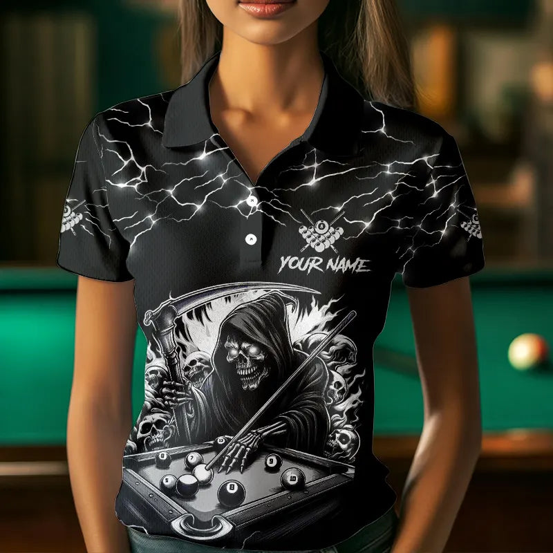 Black White Funny Death Skeleton 8 Ball Pool Women Billiard Shirts Custom Lightning Billiard Jerseys TDM3726
