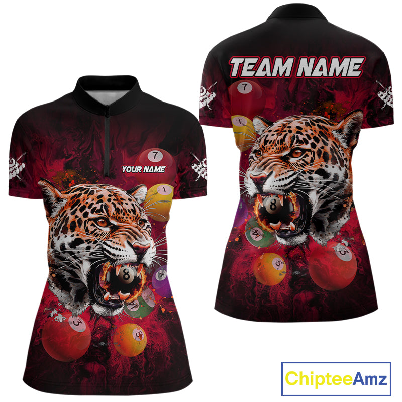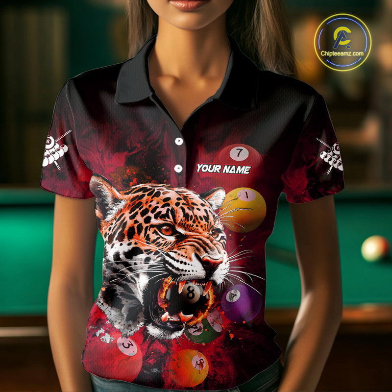 Funny Panther Flaming 8 Ball Billiard Pool Shirt For Women Custom Billiard Team Jerseys |Red TDM3825