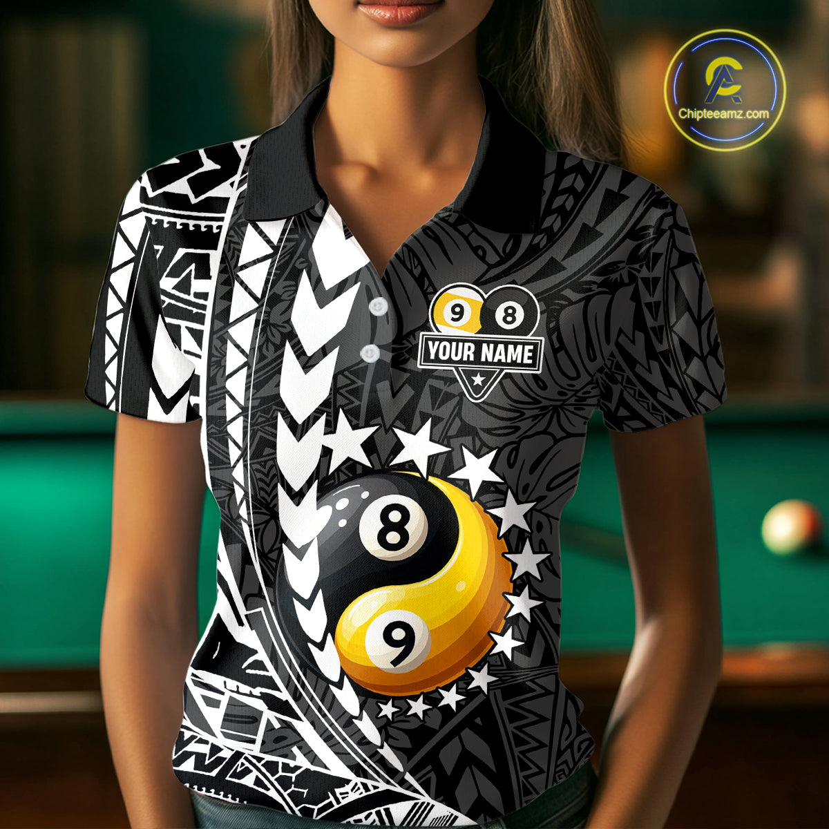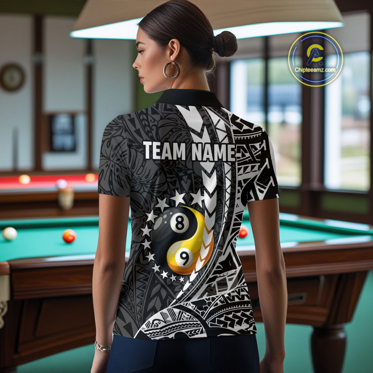 Custom White Black Tribal Yin-Yang 8 & 9 Ball Billiard Shirt For Women, Funny Pool Team Jersey TDM4687