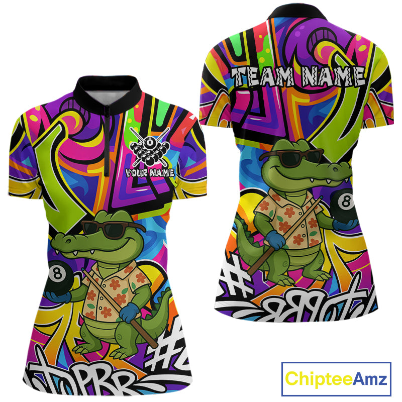 Funny Alligator Colorful Graffiti Style Custom 8 Ball Billiard Shirt For Women Best Pool Team Jersey TDM4780