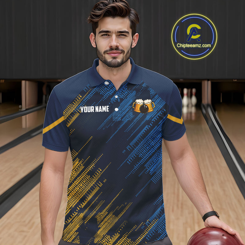 Blue and Yellow Pattern Bowling Shirt For Men Custom Here For The Beer Funny Bowling Tournament Shirt NQS10717