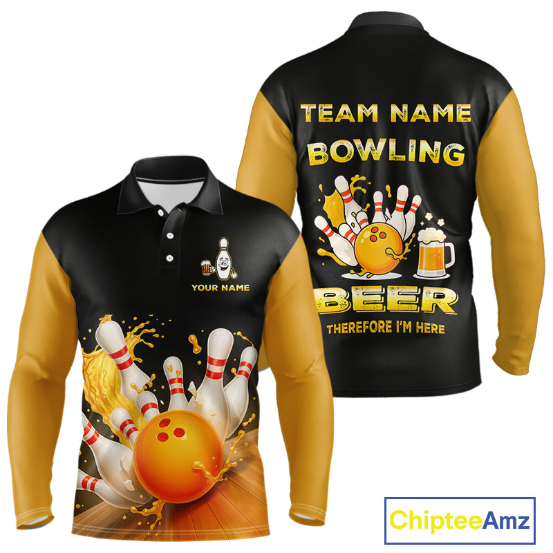 Bowling & Beer therefore i'm here custom funny Bowling shirts for Men, Bowling team apparel NQS10274