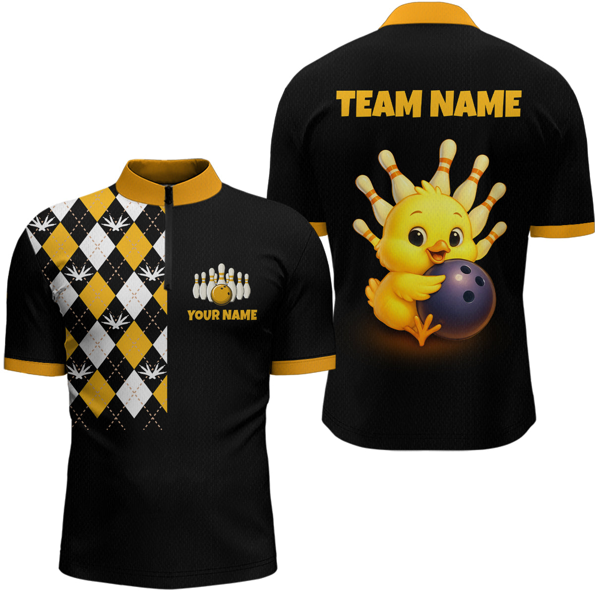 Chick Bowling Shirt Funny Chicken Bowling Team Jersey for Men Polo & Quarter-Zip Bowling League QZT705
