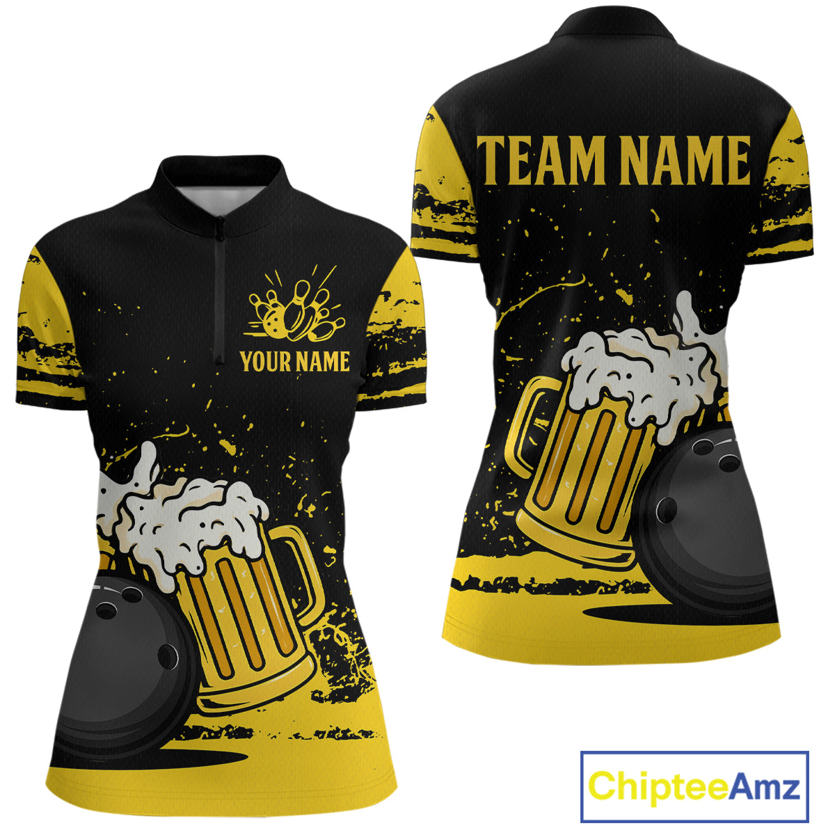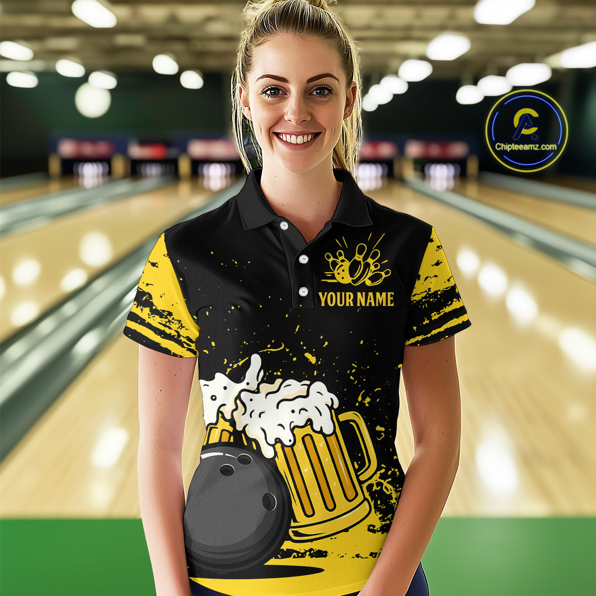 Custom Funny Beer Bowling Women Shirts Bowling Uniform Polo & 1/4 Zip Bowling Team Jerseys HNT98