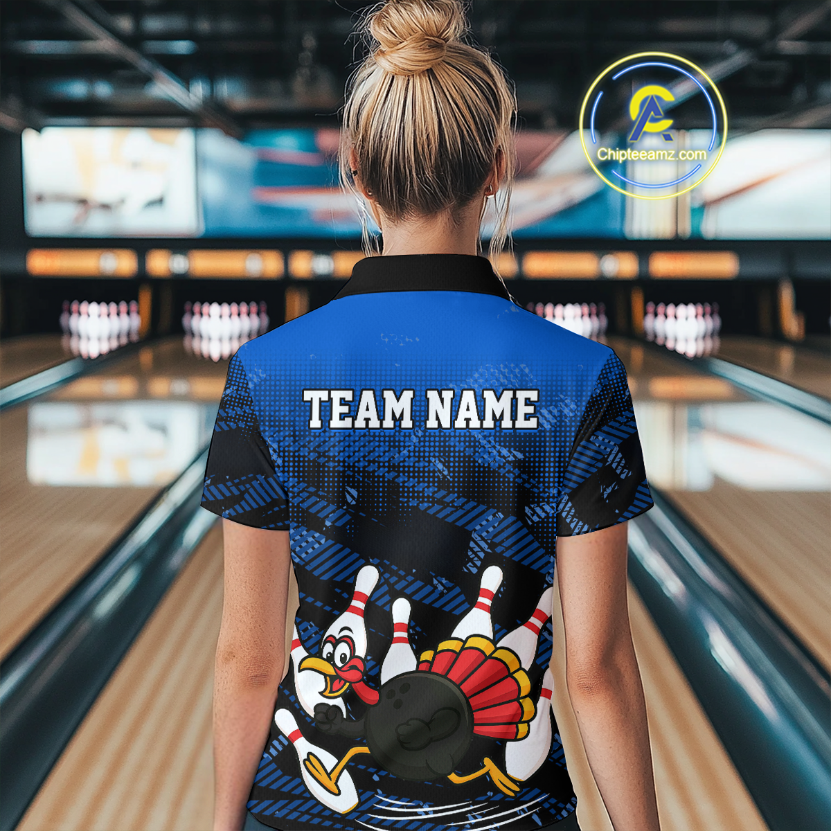 Custom Blue Funny Turkey Bowling Jersey for Women Thanksgiving Bowling Team Shirts Polo & 1/4 Zip HNT125