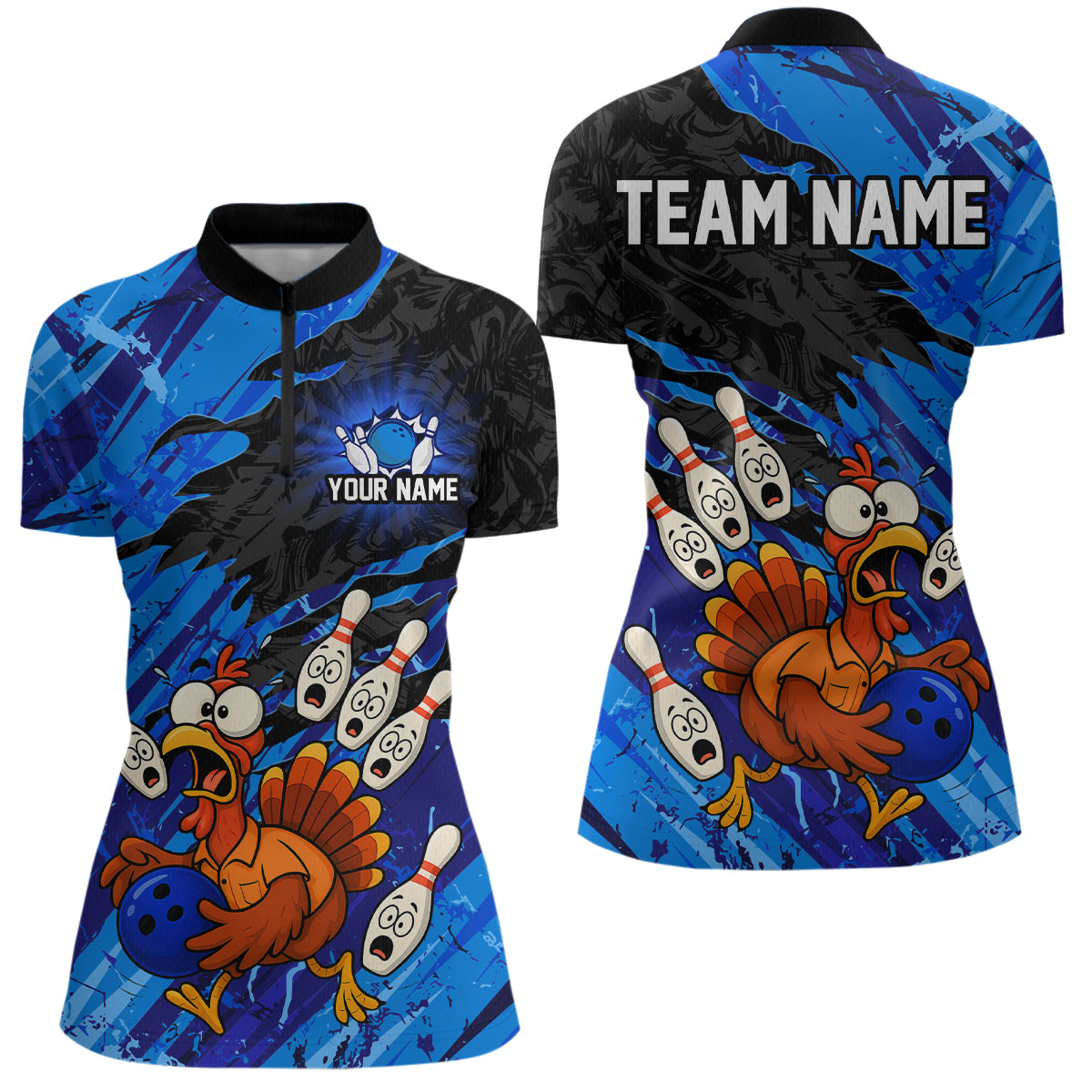 Custom Blue Turkey Bowling Shirt Funny Ball Pin League Jersey for Women Polo Outfit QZT765