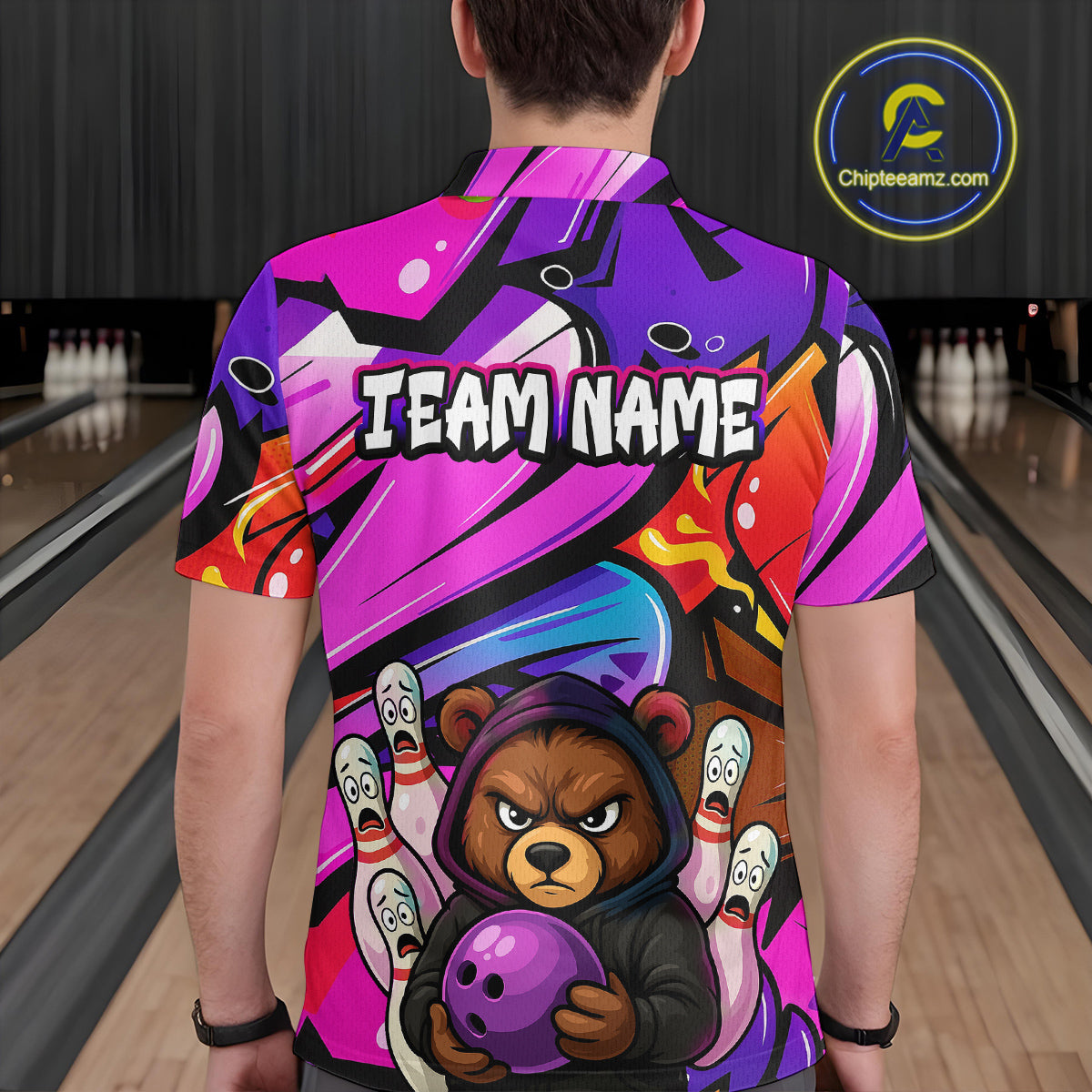 Custom Funny Bear Bowling Men Bowling Shirt Polo & Quarter-Zip Bowling Team Jerseys HNT84