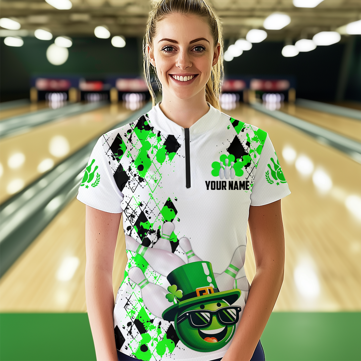 Custom Green Funny Bowling Shirt St Patrick Day Bowling 1/4-Zip Team Jersey Unisex QZT620