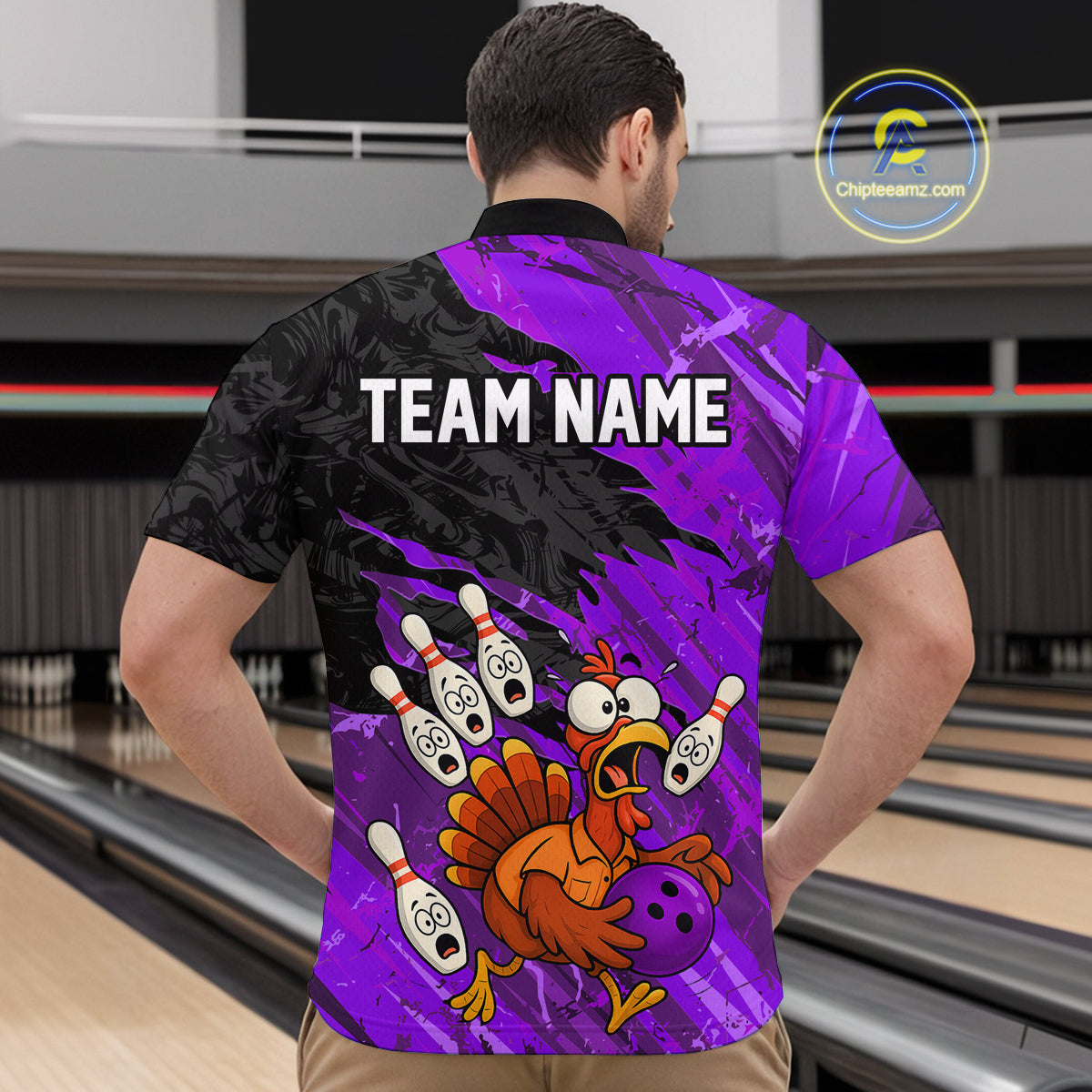 Custom Purple Turkey Bowling Shirt Funny Ball Pin League Jersey for Men Polo Outfit QZT765
