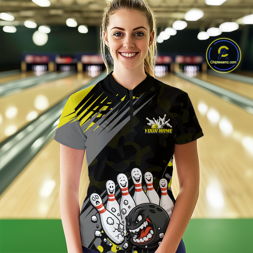 Custom Yellow Funny Bowling Shirt Crazy Bowling Jersey Women Polo & 1/4 Zip Bowling Outfit QZT785