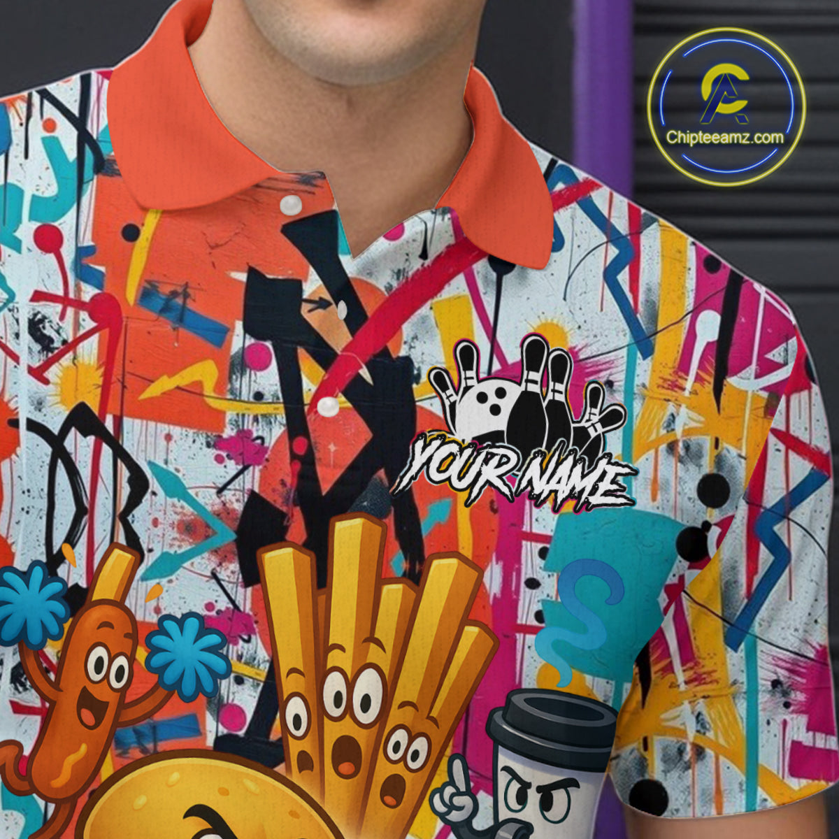 Custom Graffiti Funny Fast Food Bowling Shirt Bowling Team Jersey for Men Bowling Outfit QZT798