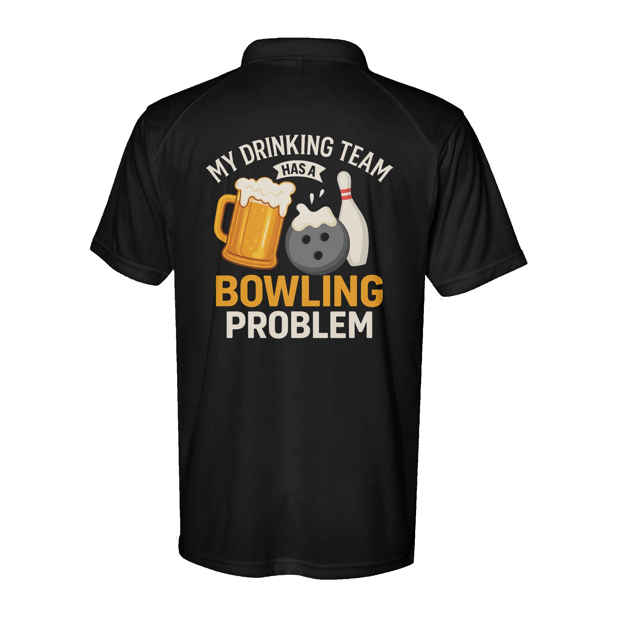 Funny Bowling Performance Polo Shirts My Drinking Team has a bowling problem D02 NQS9891
