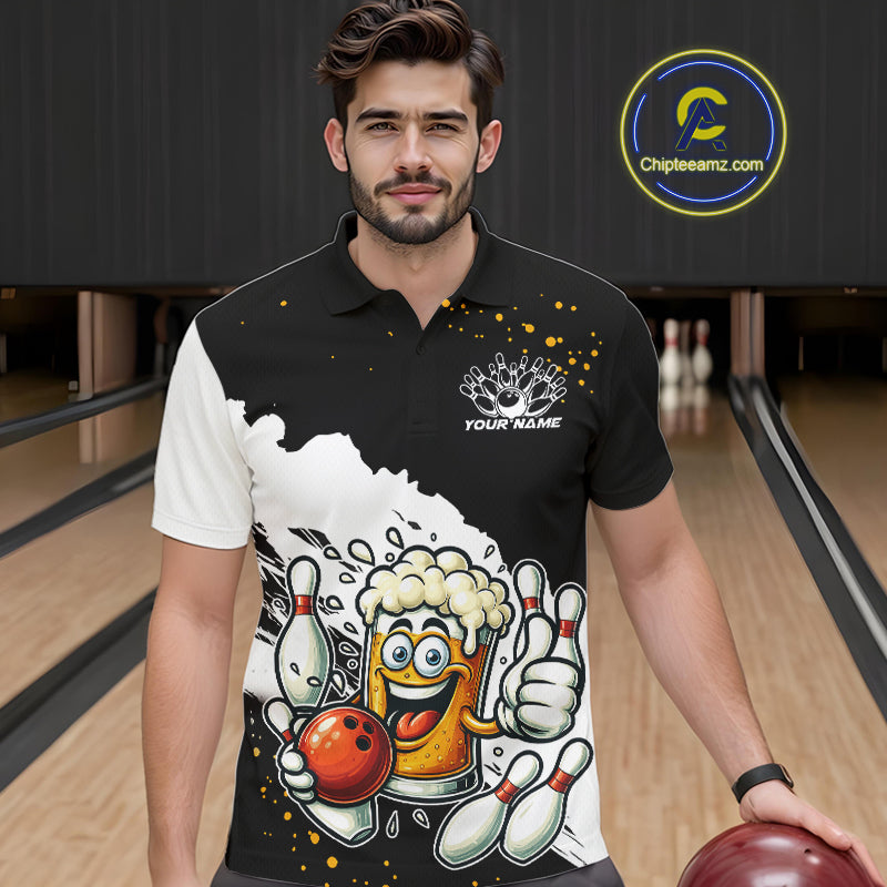 Funny Beer Glass Black and White Bowling Polo, 1/4 Zip Shirts for Men Custom Bowling Team Jersey NQS10933