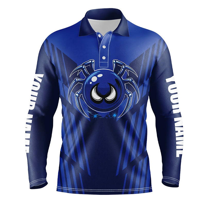 Funny Blue spider bowling ball Men Bowling Polo, Quarter zip shirts custom bowling Team jerseys NQS8206