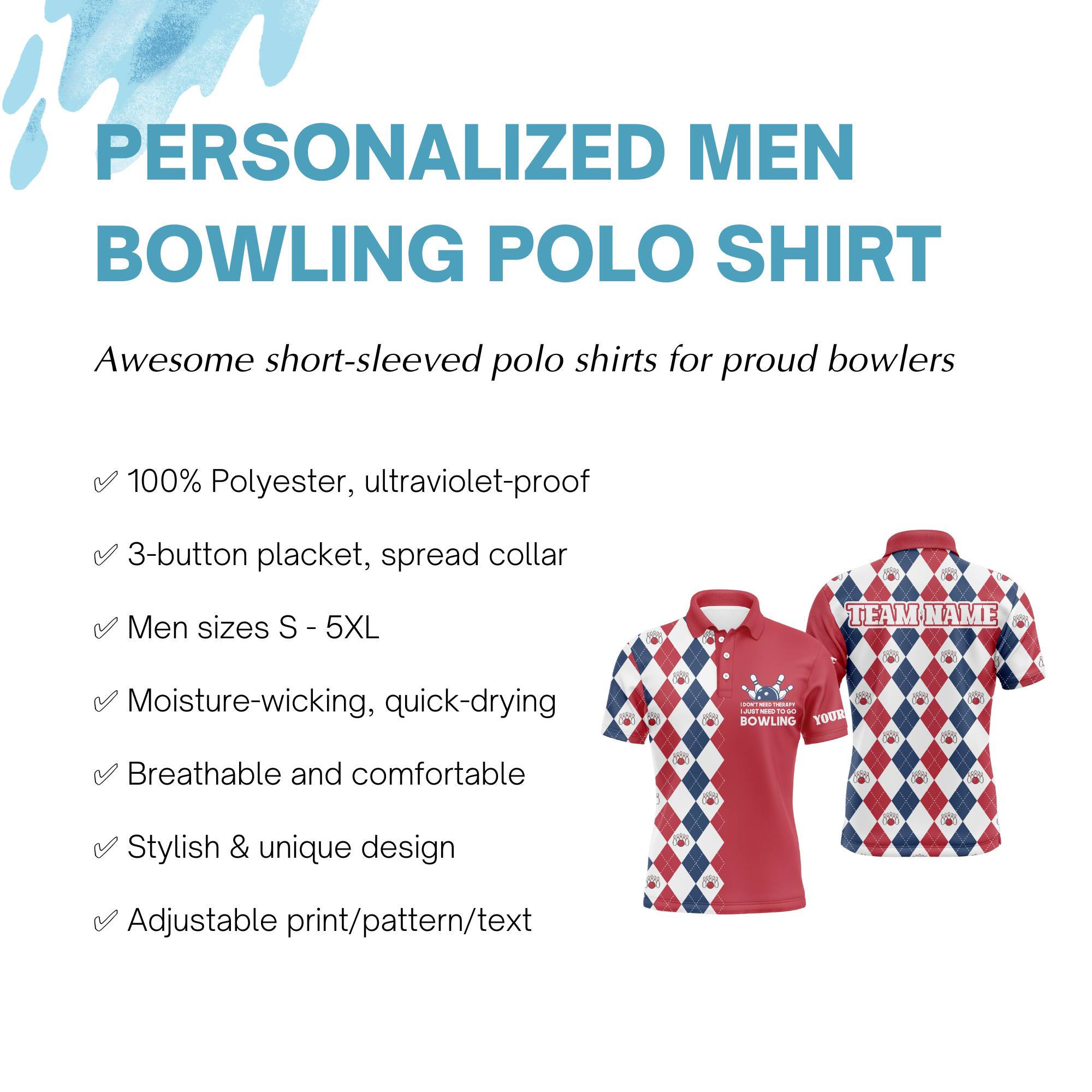 Funny Men Polo Bowling Shirt, Personalized Name Argyle Bowling Pattern Bowler Team Jersey NBP21