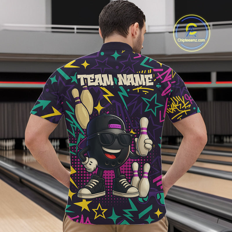 Funny Bowling shirts for Men custom purple graffiti pattern bowling team jerseys, gift for bowlers NQS10271