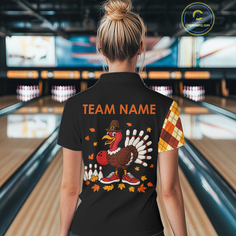 Funny Bowling Turkey Thanksgiving Women Bowling Shirt argyle pattern Custom Team Bowling Jersey NQS10848