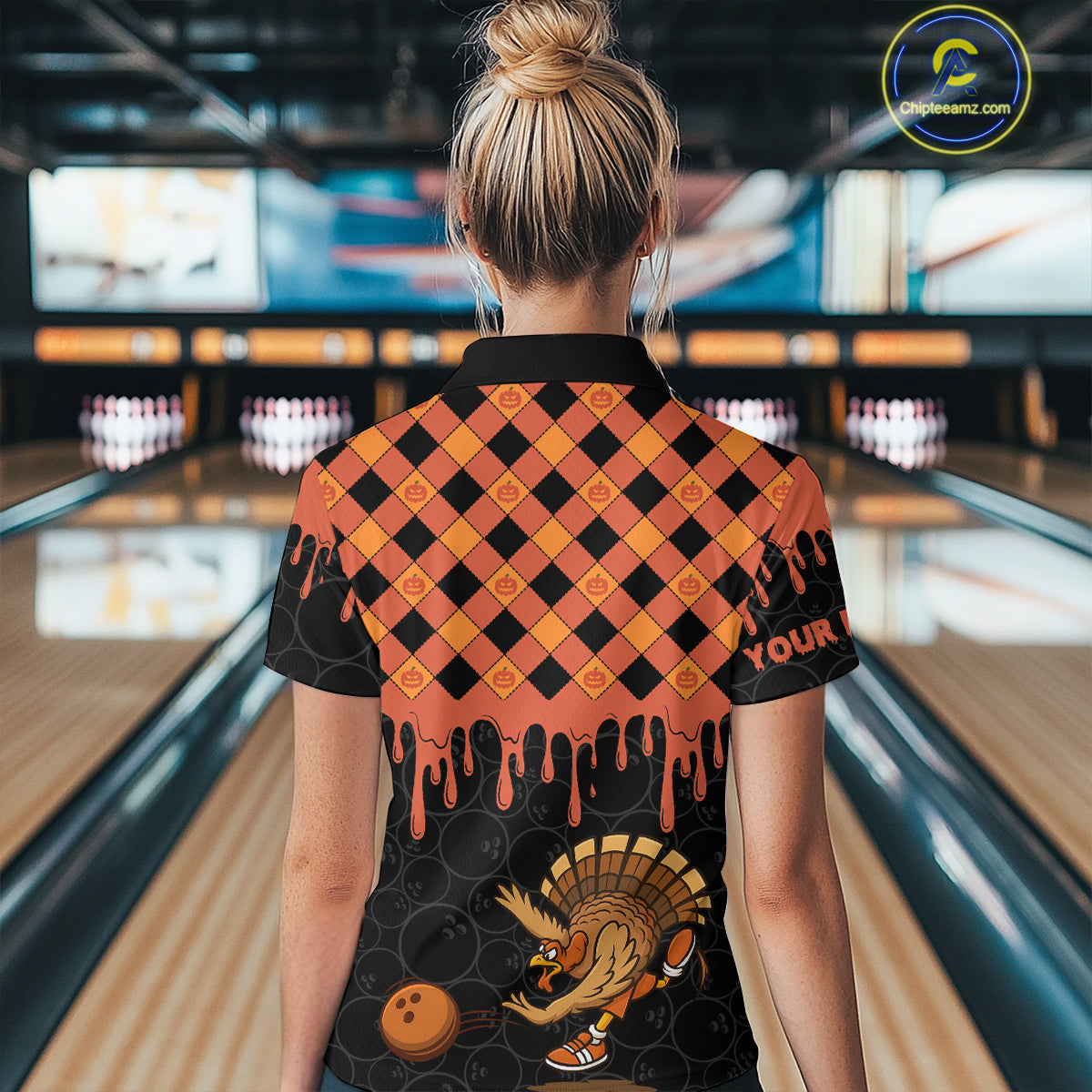 Funny Bowling Turkey Thanksgiving Womens Bowling Shirt Orange Pumpkin Custom Team Bowling Jersey NQS10840
