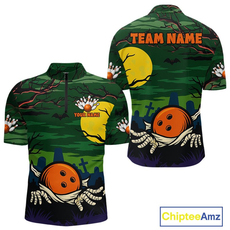 Funny Halloween Bowling Polo, Quarter Zip Shirts For Men Custom Halloween Team Bowling Jersey NQS10765