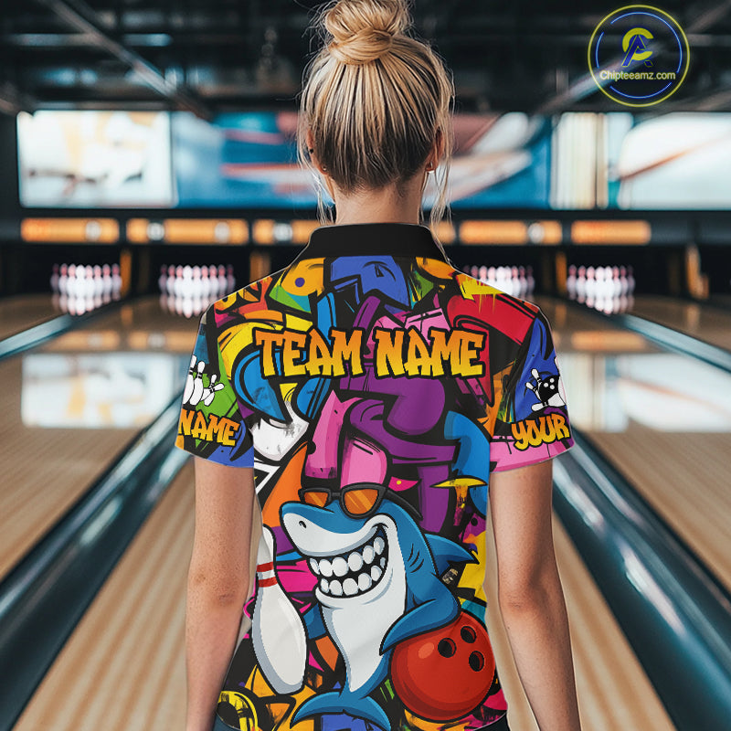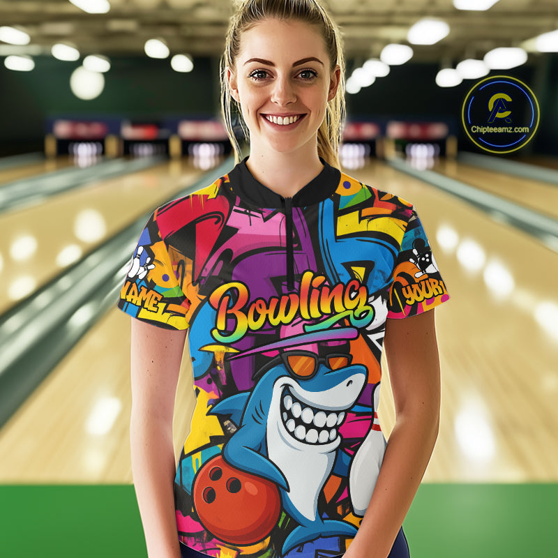 Funny Shark Bowling Shirts For Women Custom Colorful Shark Bowling outfit, Team Bowling Jersey NQS9815