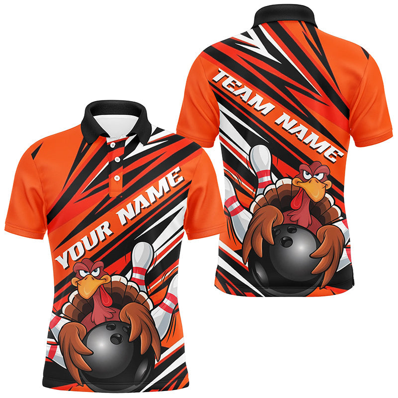 Black And Orange Custom Turkey Bowling Shirts For Men, Funny Thanksgiving Bowling Team Outfits IPHW7658