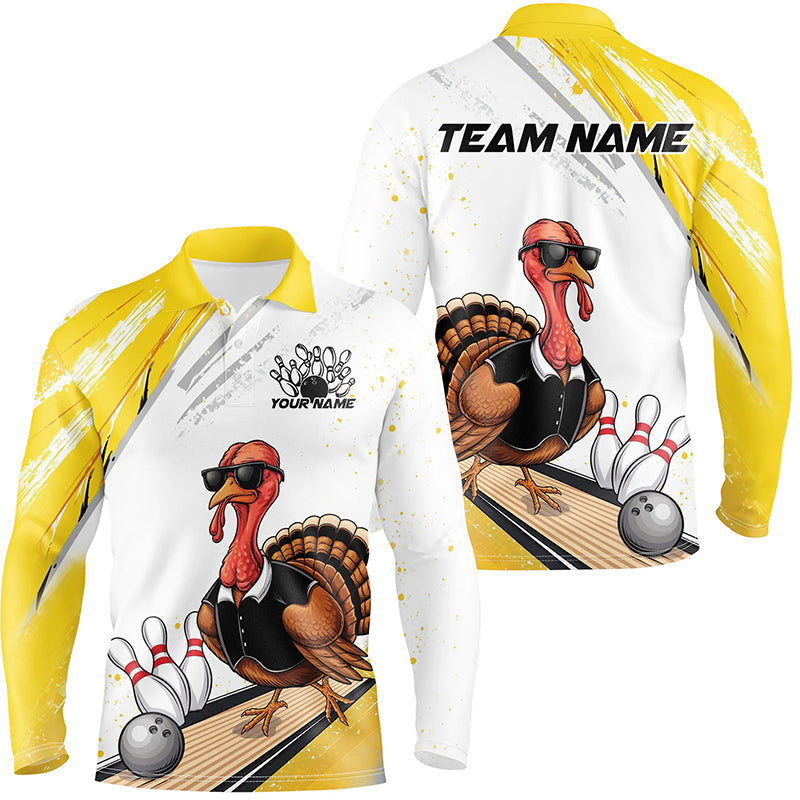 Custom Yellow Funny Turkey Bowling Team Shirts For Men, Thanksgiving Bowler Outfits IPHW7940