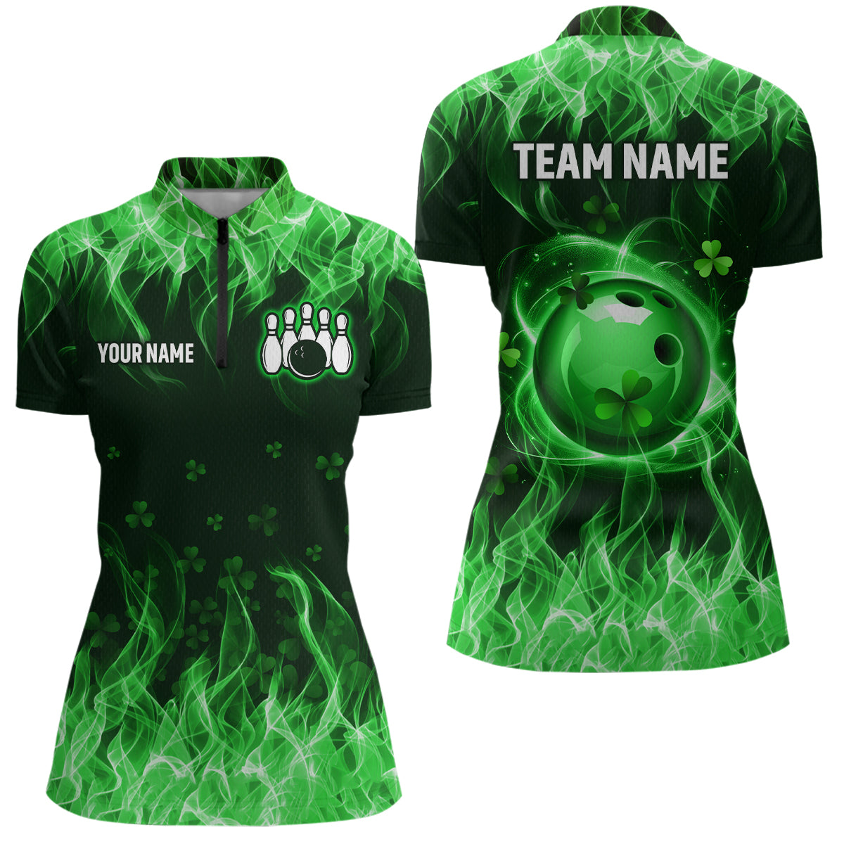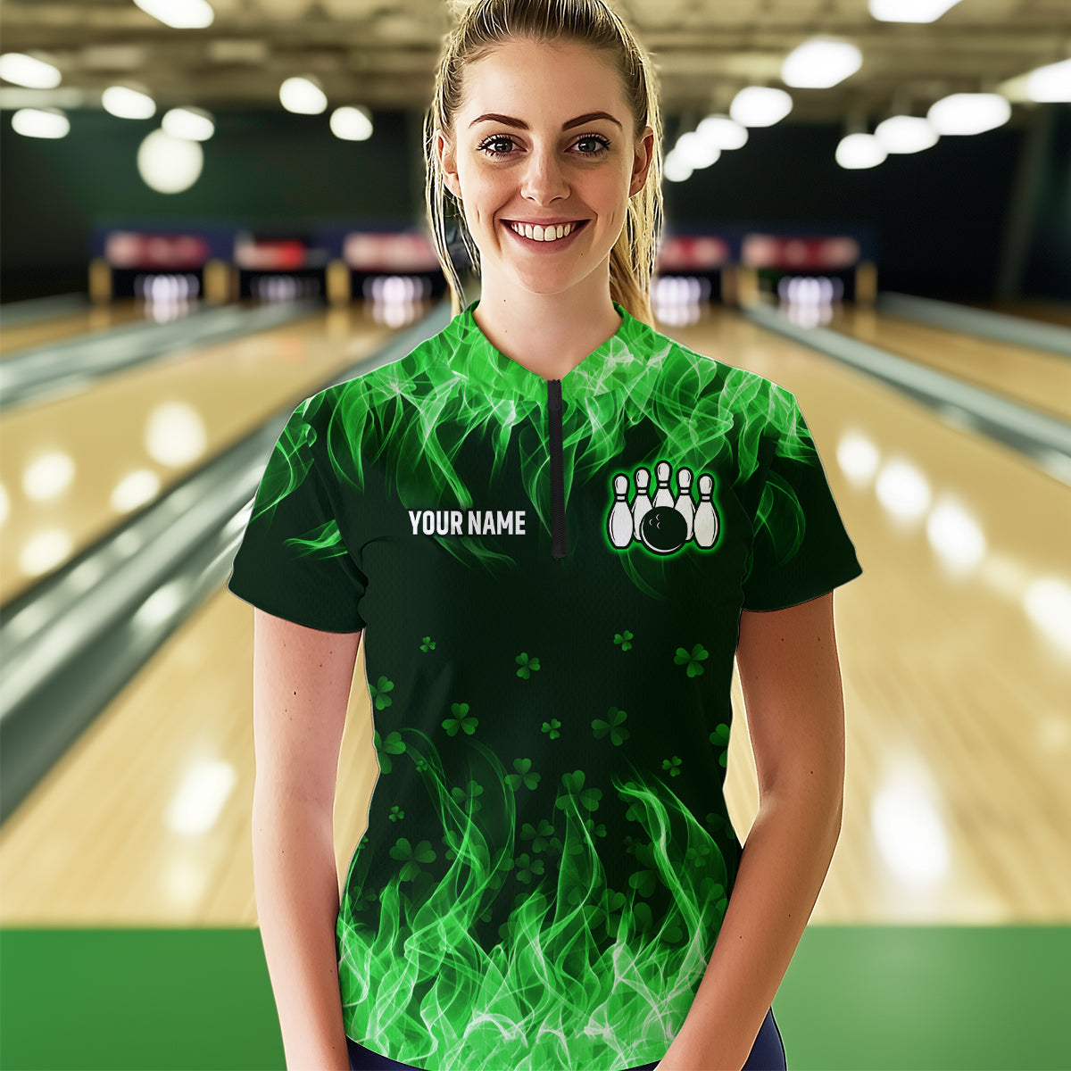 Personalized St Patrick Day Funny Flaming Bowling Shirt Women Team Polo & 1/4 Zip Shirts HNT13