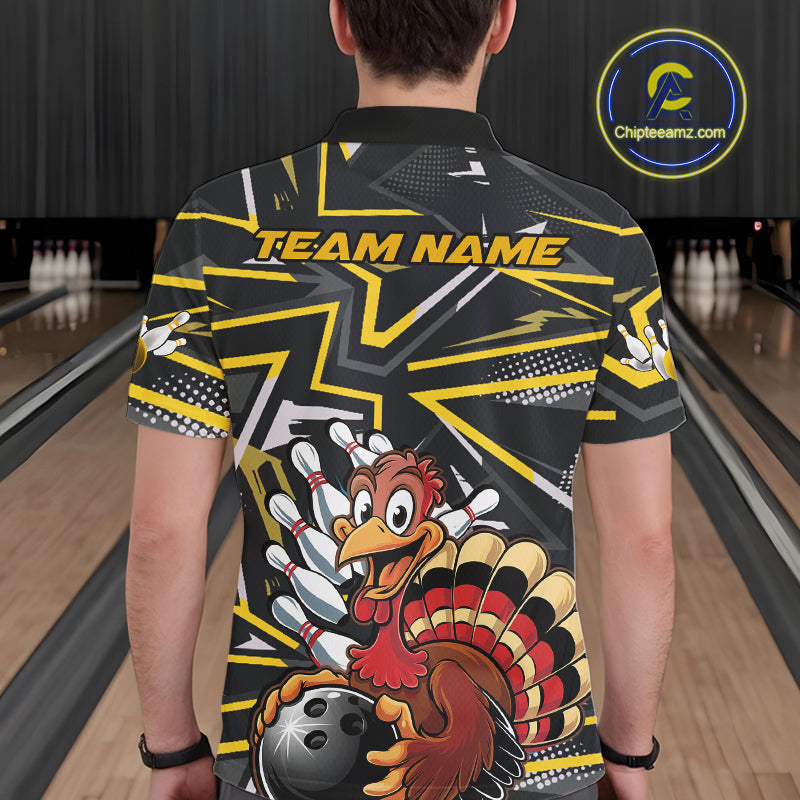 Custom Funny Turkey Bowling Jerseys, Yellow Thanksgiving Bowling Team Men Polo Shirt IPHW9722