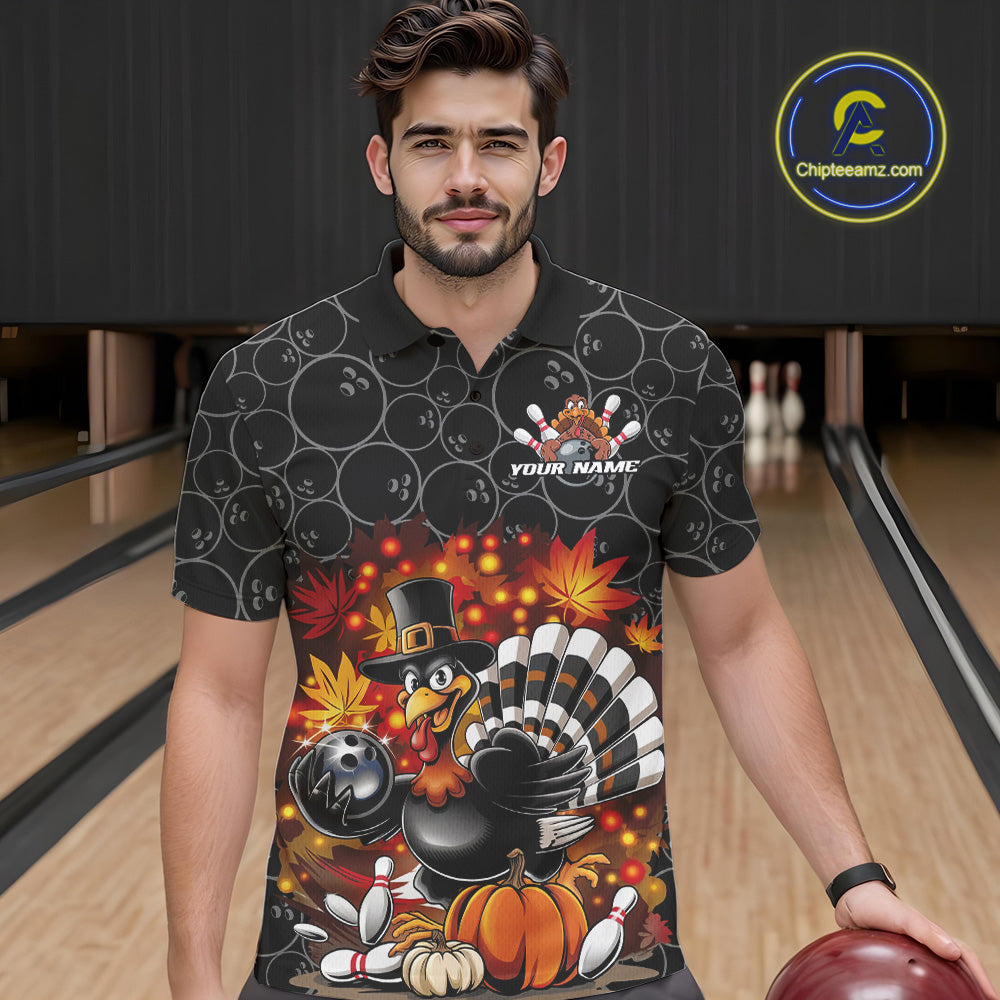 Custom Funny Thanksgiving Turkey Bowling Men Polo Shirts, Autumn Bowling Shirt IPHW9771