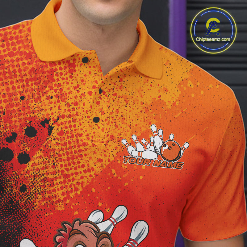 Custom Funny Orange Turkey Bowling Team Men Polo Shirts, Thanksgiving Bowling Outfit IPHW9785