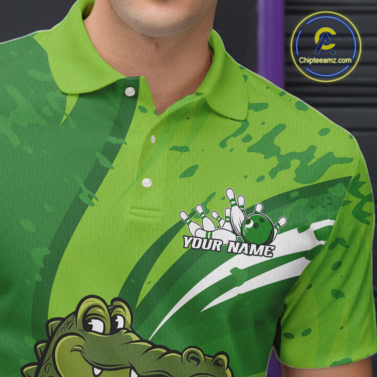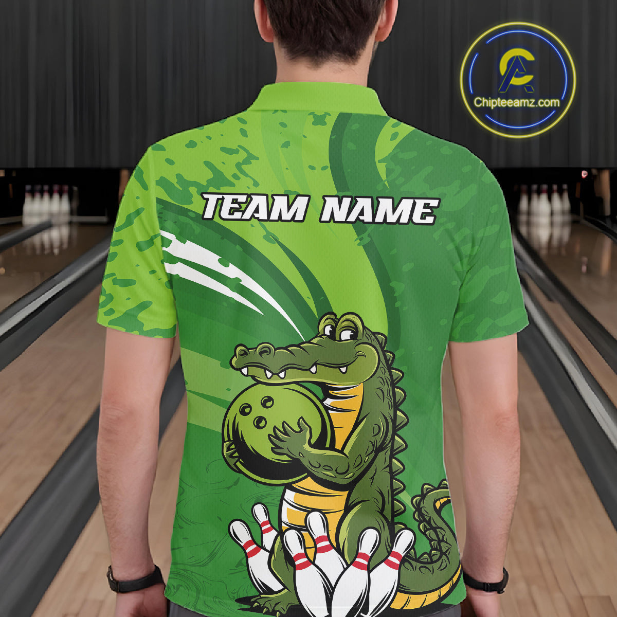 Custom Funny Alligator Bowling Tournament Team Jerseys, Alligator Bowling Men Polo Shirt IPHW9925