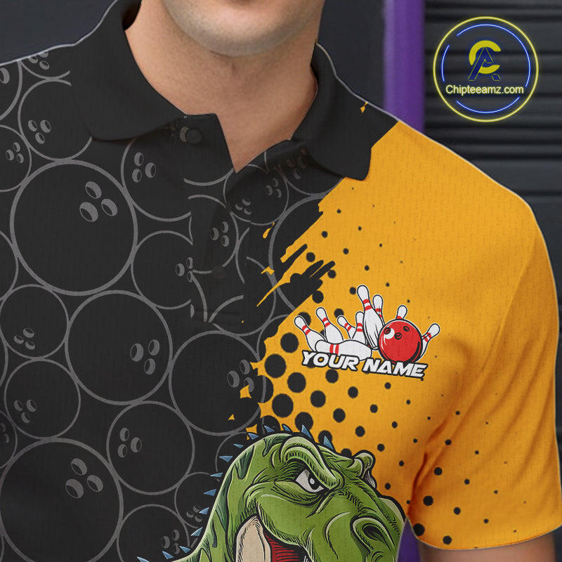 Custom Funny Dinosaur Bowling Polo Shirt For Men, Dinosaur Bowling Team Jerseys IPHW9928