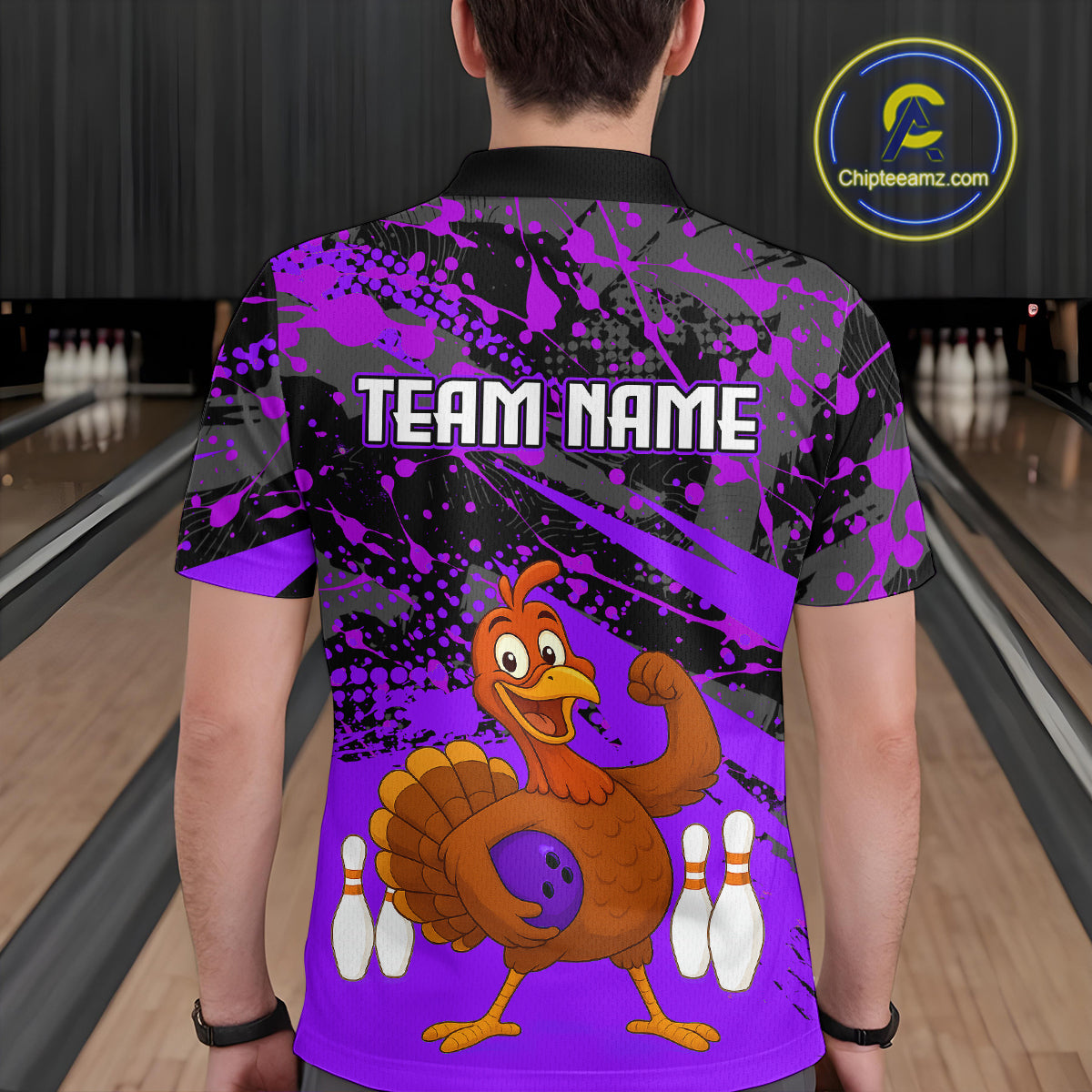 Purple Funny Turkey Bowling Team Shirt for Men Bowling Jersey Thanksgiving Bowling Outfit QZT776
