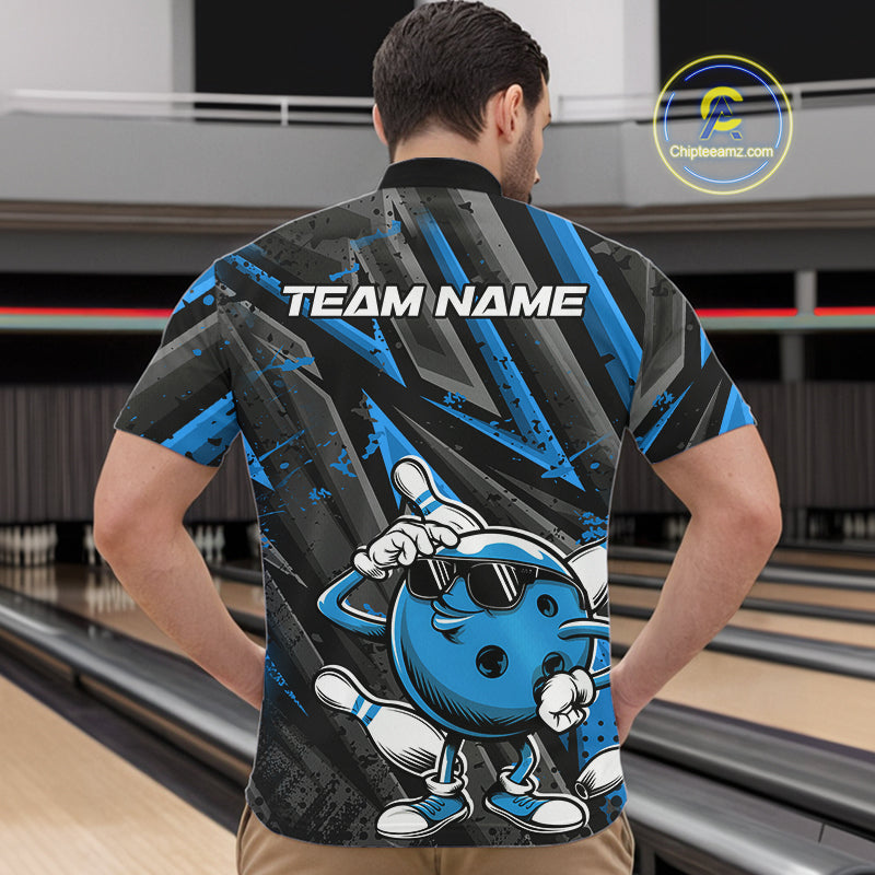 Black And Blue Funny Custom Bowling Jerseys, Cool Bowling Quarter-Zip Shirts For Men IPHW9362