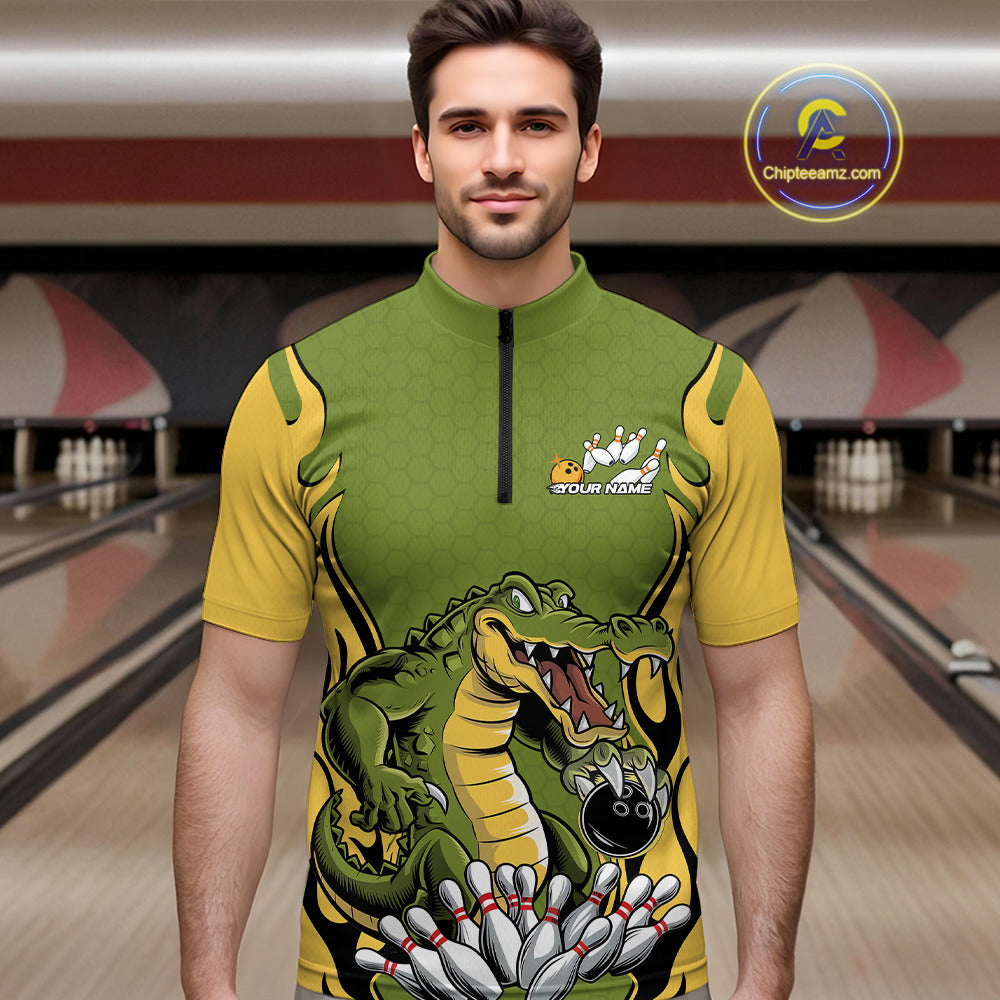 Custom Funny Alligator Bowling Quarter-Zip Shirt For Men, Alligator Bowling Team League Shirt IPHW9924