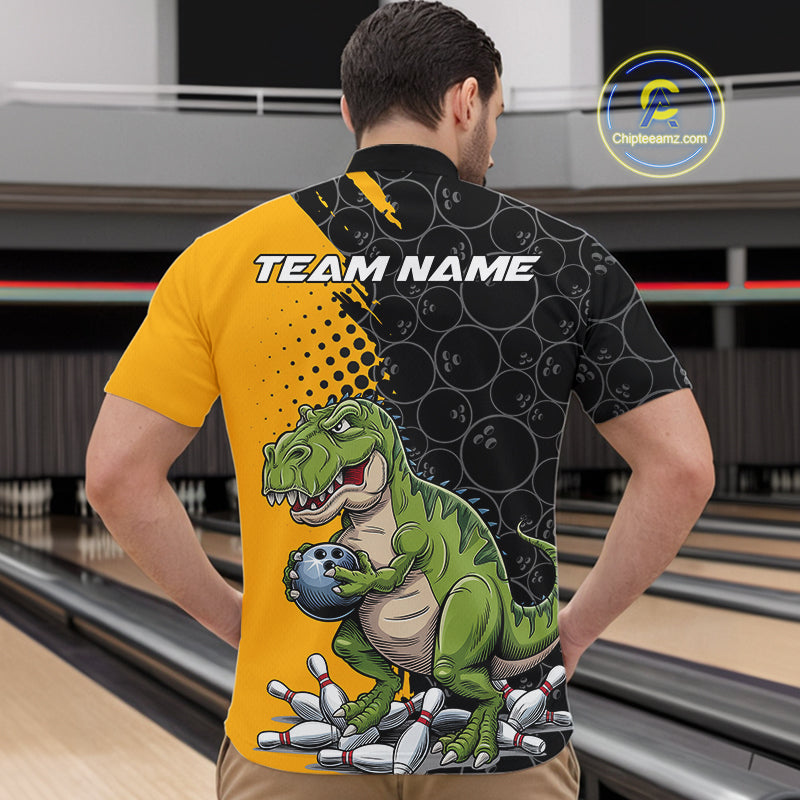 Custom Funny Dinosaur Bowling Quarter-Zip Shirt For Men, Dinosaur Bowling Team Jerseys IPHW9928