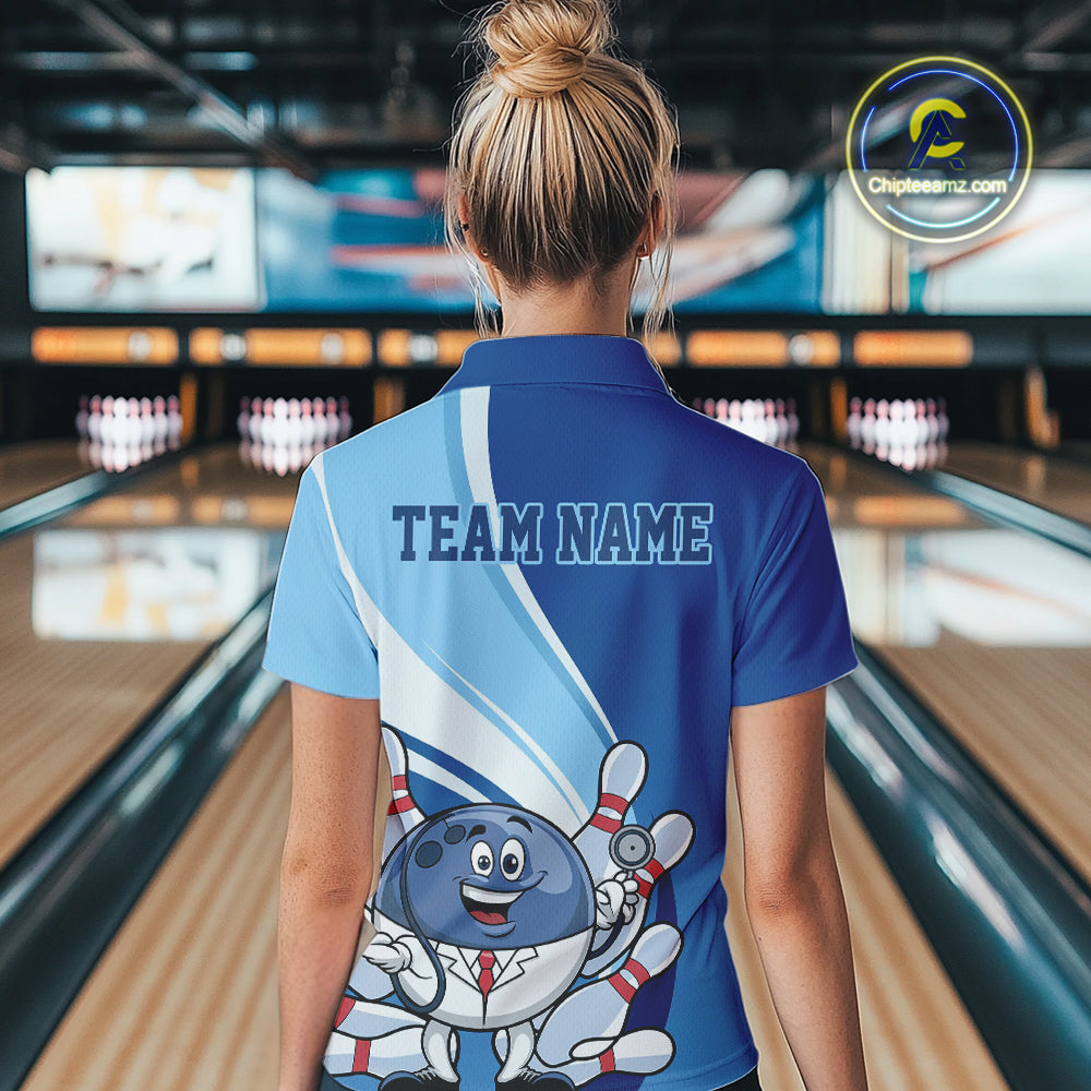 Custom Blue Doctor Bowling Quarter-Zip Shirts For Women, Funny Doctor Bowling Jerseys IPHW9239