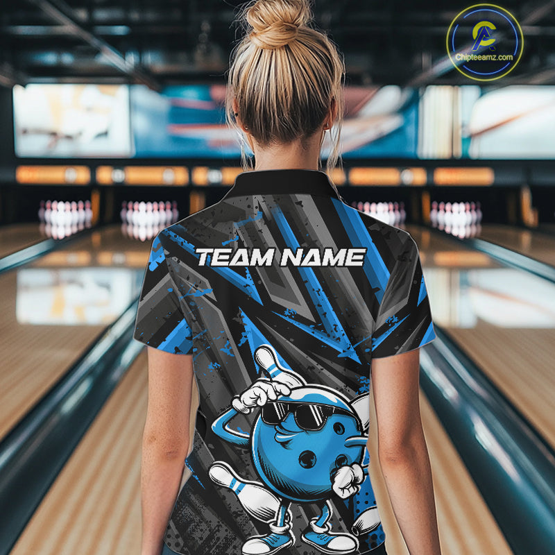 Black And Blue Funny Custom Bowling Jerseys, Cool Bowling Quarter-Zip Shirts For Women IPHW9362